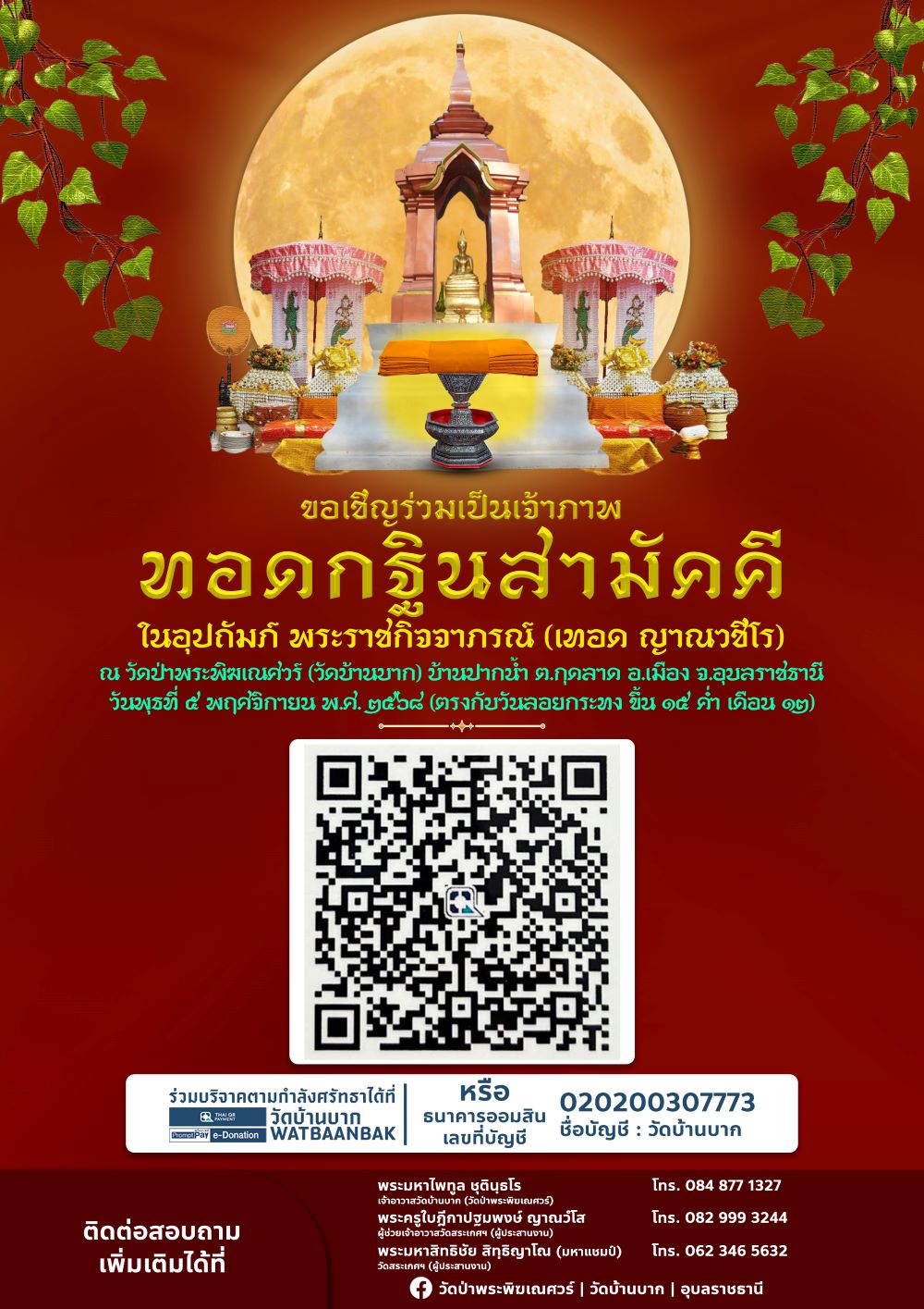 ดูรายละเอียดเพิ่มเติมได้ที่ https://www.facebook.com/watpaknumubon